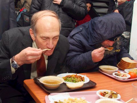 שר האוצר אולמרט ביקר במהלך בבית תמחוי בירושלים במערכת הפוליטית זעמו על הניצול הציני של העוני ח"כ ישי: בתי התמחוי הם עדות חיה לכישלון החברתי-כלכלי של ממשלת ישראל