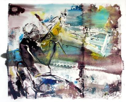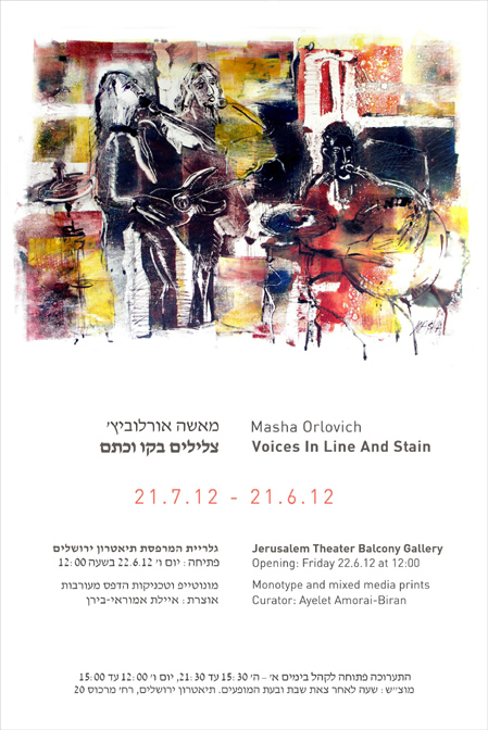 האמנית מאשה אורלוביץ' ילידת לנינגרד (סנט פטרסבורג), עלתה לארץ ב-1991, חיה ויוצרת כיום בצפת. מציגה בתערוכה זו עבודות בטכניקות שונות: ציורי אקוורל, הדפס ידני ותחריט. היצירות עוסקות בשני נושאים עיקריים: נופים וטבע ודיוקנאות של מוסיקאים בזמן חזרות ובזמן קונצרטים. (בהשראת בן זוגה לחיים, נגן צ'מבלו, עוגבים ופסנתרים עתיקים, וחבריו). הצלילים והמוזיקה העוטפת את עולמה מתורגמים לשפת הציור: לקו וכתם ולצבעים הזורמים לתוך הנייר והבד.